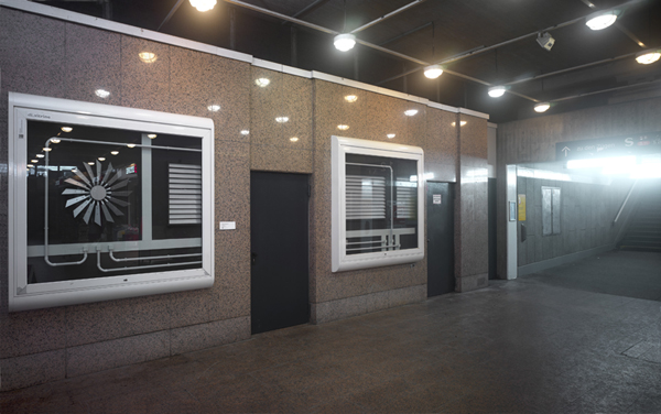 Aggregate 2 was installed in two pre-existing glass cases on the wall of the station.