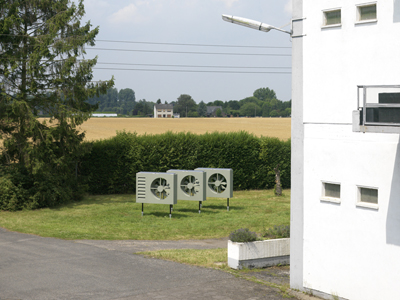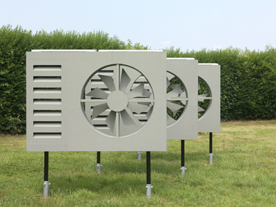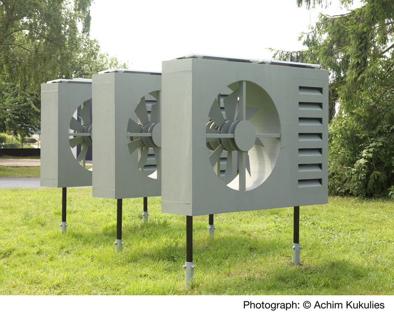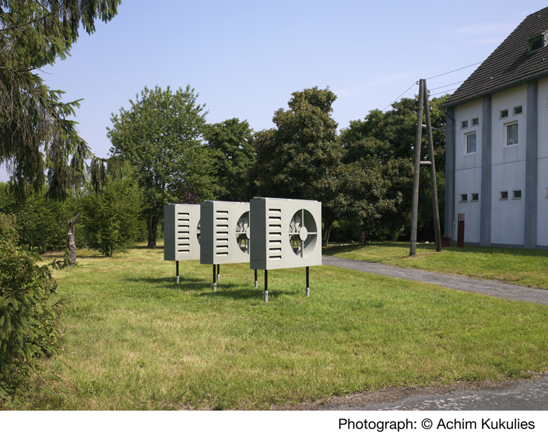 wood, Designplatten, Solar panels, motors, screw-in foundations; 3 x (200 x 140 x 40 cm); Seewerk, Moers 2009