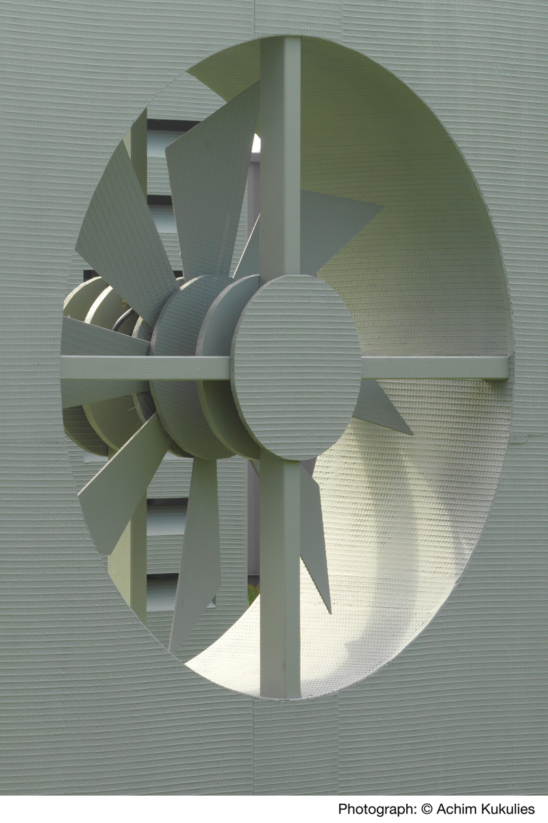 Solar panels mounted on the top of the Climate Changer provide electricity for the motors driving the fans.