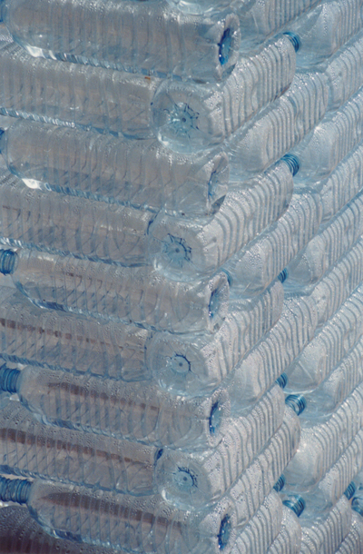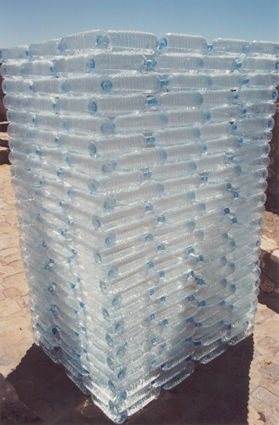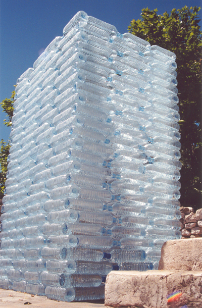 in collaboration with Natalie Bertrams; Volvic bottles, Water; 120 x 90 x 250 cm; part of the project "L'Eau", St. Paul de Vence, Frankreich, 2000